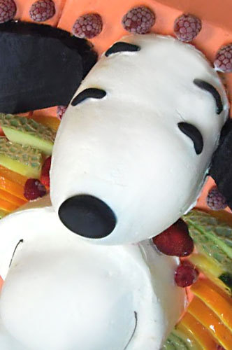通販ケーキで うつ伏せ姿のスヌーピーの全身を立体形ケーキで 大阪市東住吉区 パティスリーデコ